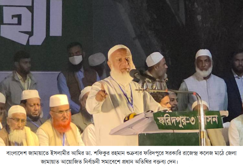 আজ শুক্রবার রাতে ফরিদপুরে সরকারি রাজেন্দ্র কলেজ মাঠে জেলা জামায়াত আয়োজিত নির্বাচনী সমাবেশে প্রধান অতিথির বক্তব্যে তিনি এসব কথা বলেন।