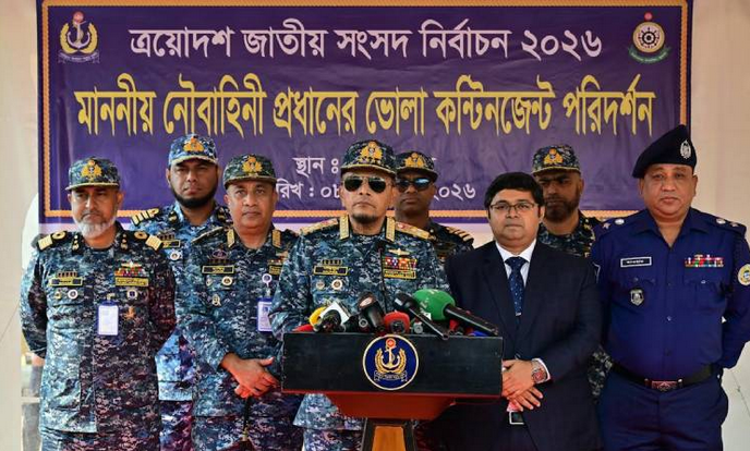 আসন্ন ত্রয়োদশ জাতীয় সংসদ নির্বাচন ও গণভোট-২০২৬ অবাধ, সুষ্ঠু, নিরপেক্ষ ও শান্তিপূর্ণভাবে আয়োজনে বাংলাদেশ নৌবাহিনী ‘ইন এইড টু সিভিল পাওয়ার’-এর আওতায় দায়িত্ব পালন করছে। এ প্রেক্ষিতে আজ রোববার নৌবাহিনী প্রধান এডমিরাল এম নাজমুল হাসান চরফ্যাশন ও ভোলা পরিদর্শন করেছেন। আন্তঃবাহিনী জনসংযোগ পরিদপ্তরের (আইএসপিআর) সংবাদ বিজ্ঞপ্তিতে আজ এ তথ্য জানানো হয়েছে।