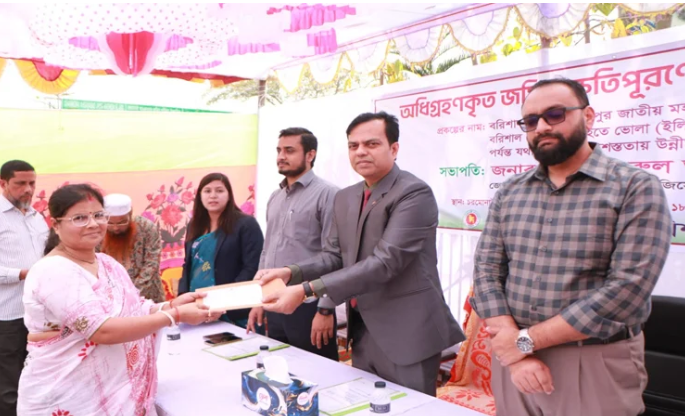 বরিশাল-ভোলা-লক্ষ্মীপুর জাতীয় মহাসড়ক উন্নয়ন প্রকল্পের আওতায় জমি অধিগ্রহণে ক্ষতিগ্রস্তদের মাঝে ২ কোটি ৭৯ লাখ ৭১ হাজার ৭৩৪ টাকার চেক বিতরণ করা হয়েছে।